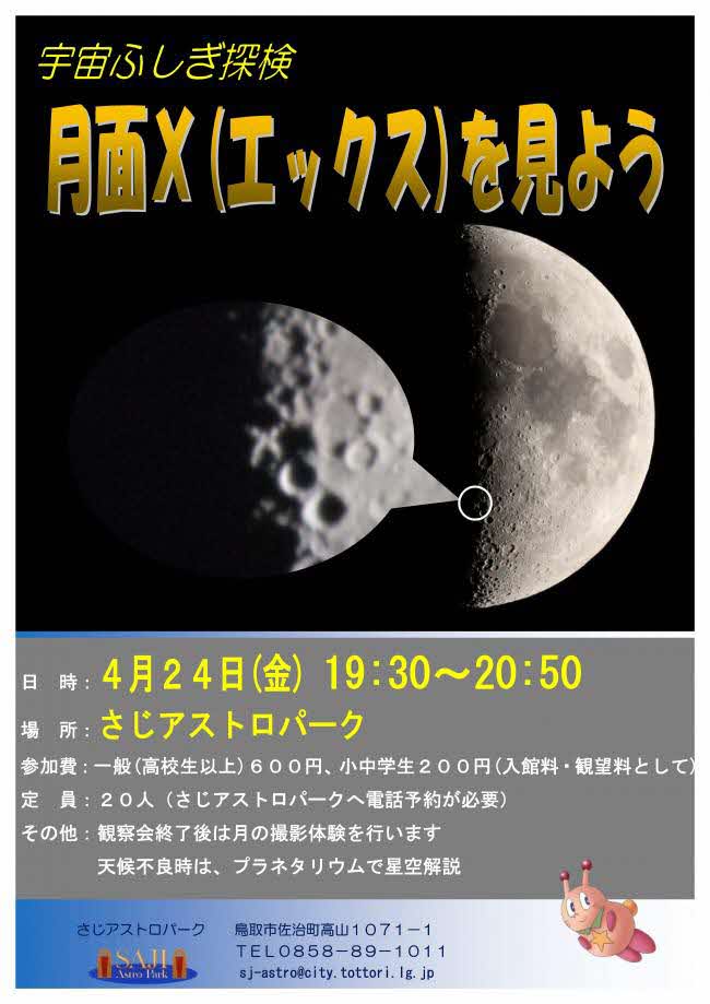 月面に「X」の文字が浮かび上がる現象を見ます。